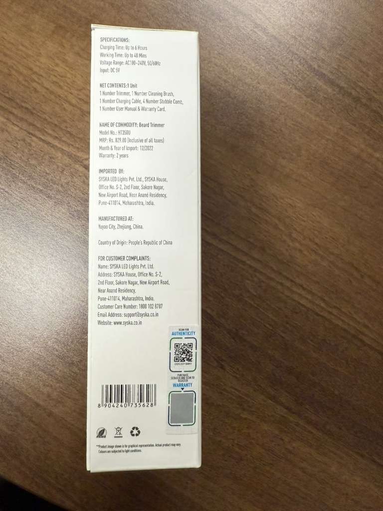 64799 - SYSKA HT200U All-in-One Cordless Beard Trimmer for Men USA