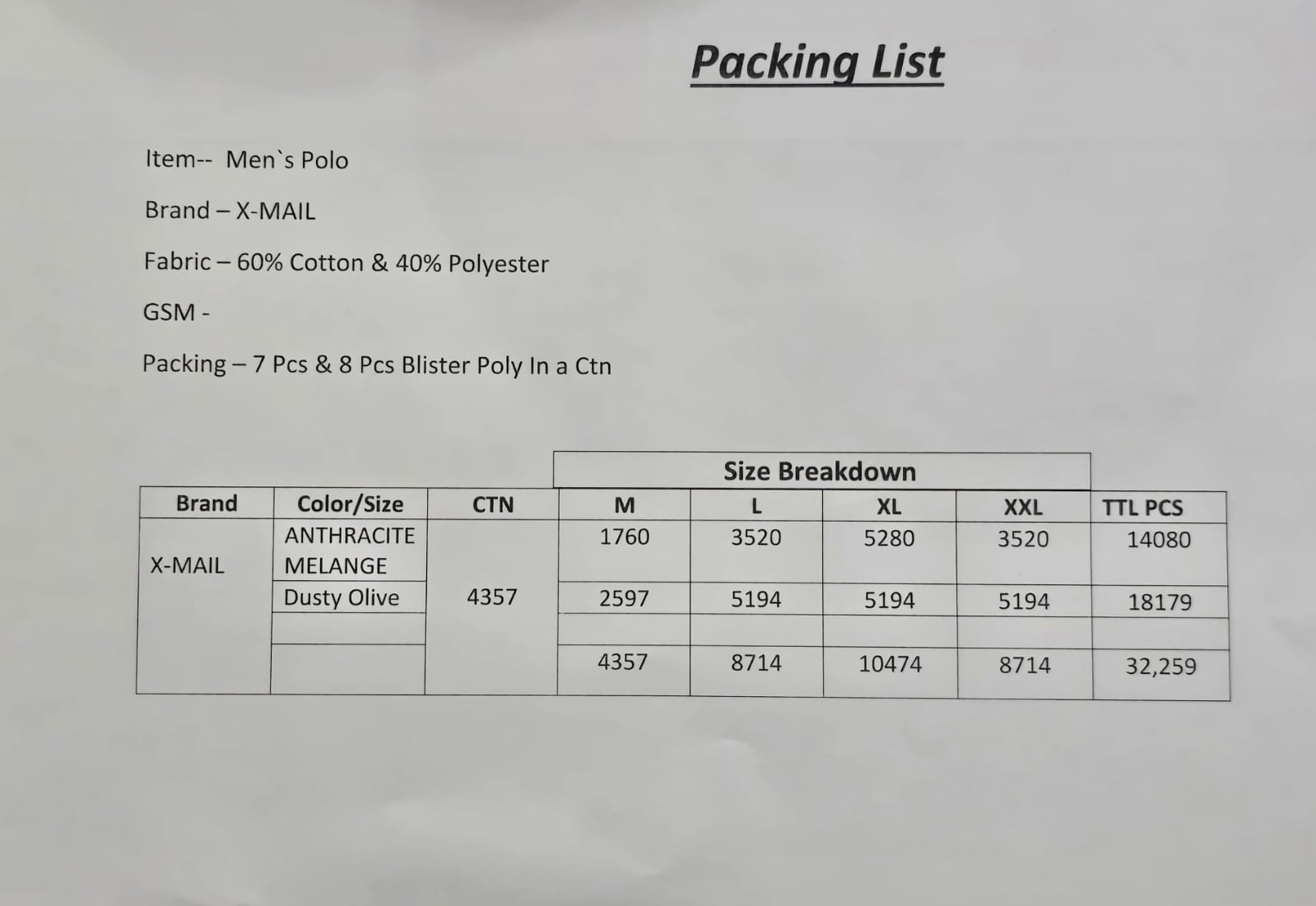 Fabrics: 60% Cotton, 40% Polyester Pique 220 GSM