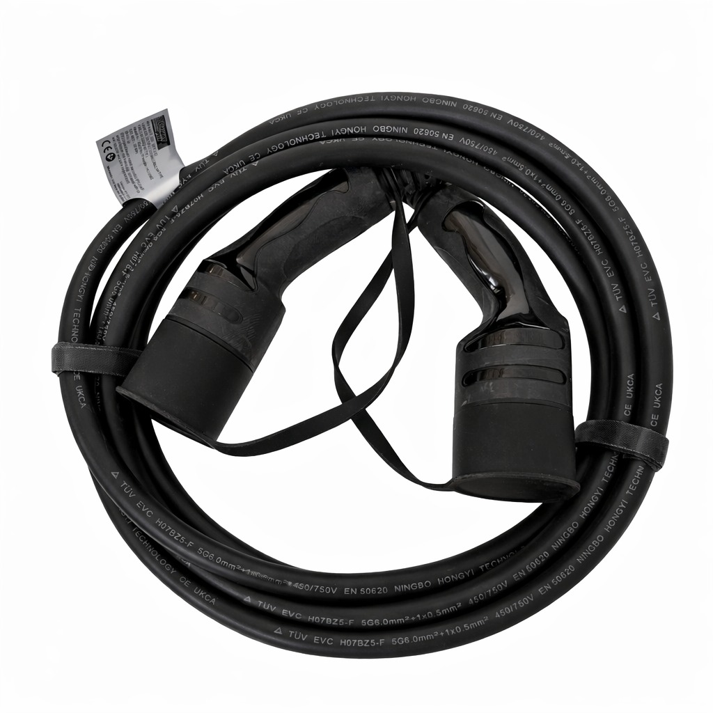 Includes standard European EV charging cables suitable for electric and plug-in hybrid vehicles, compatible with home chargers and public charging stations.