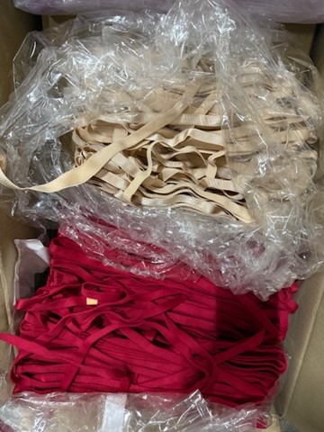 Articles such as shoulder straps, padded cups, elastics, hooks, fasteners etc. etc.