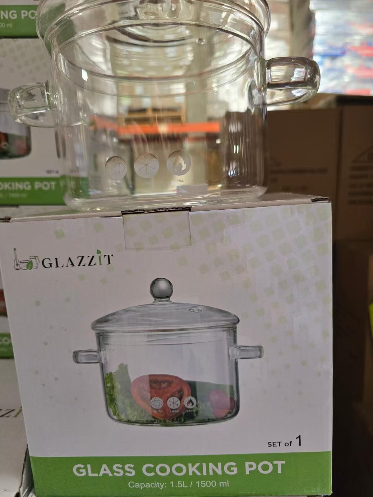 GLAZZIT 1.5L & 2L Glass Cooking Pot