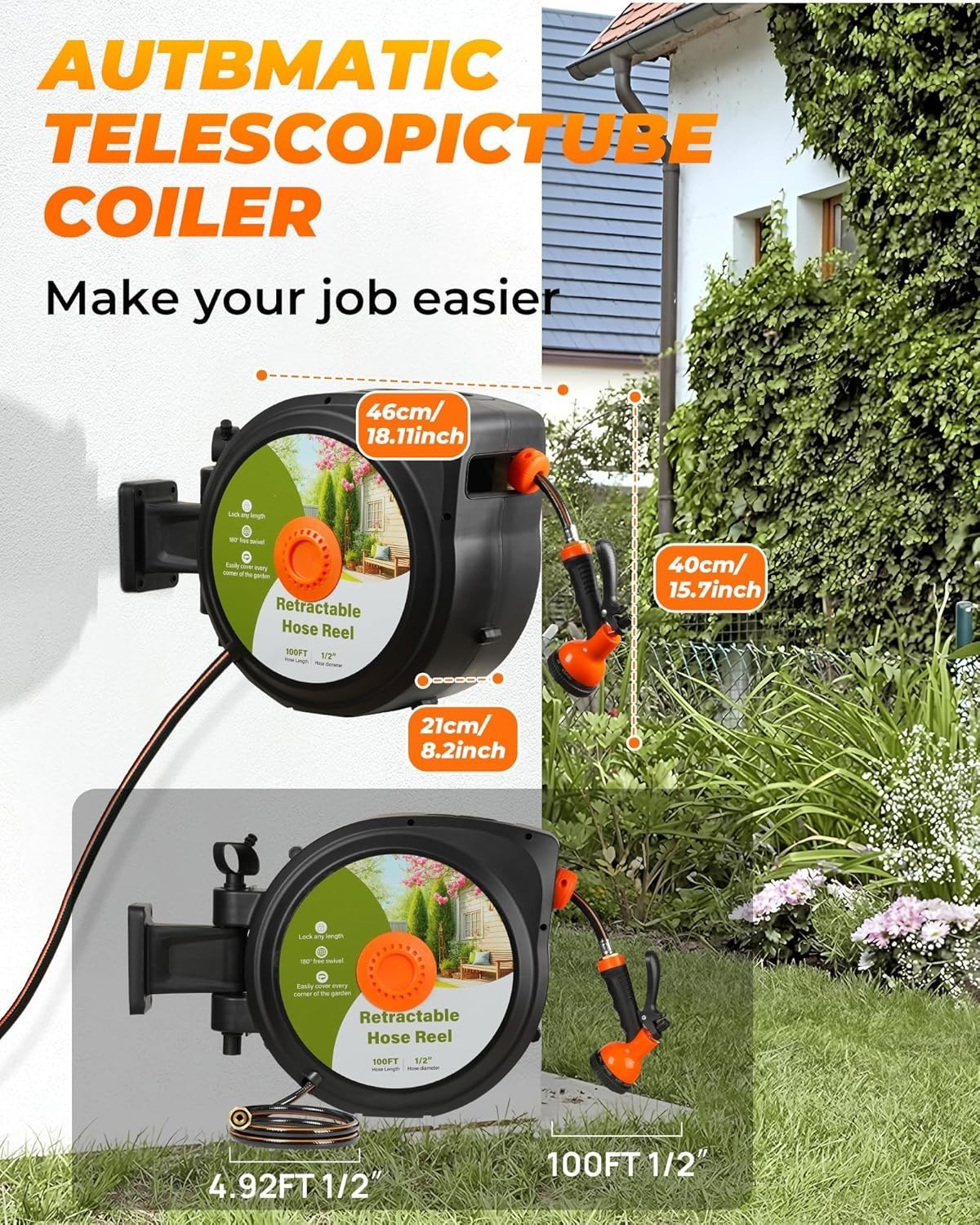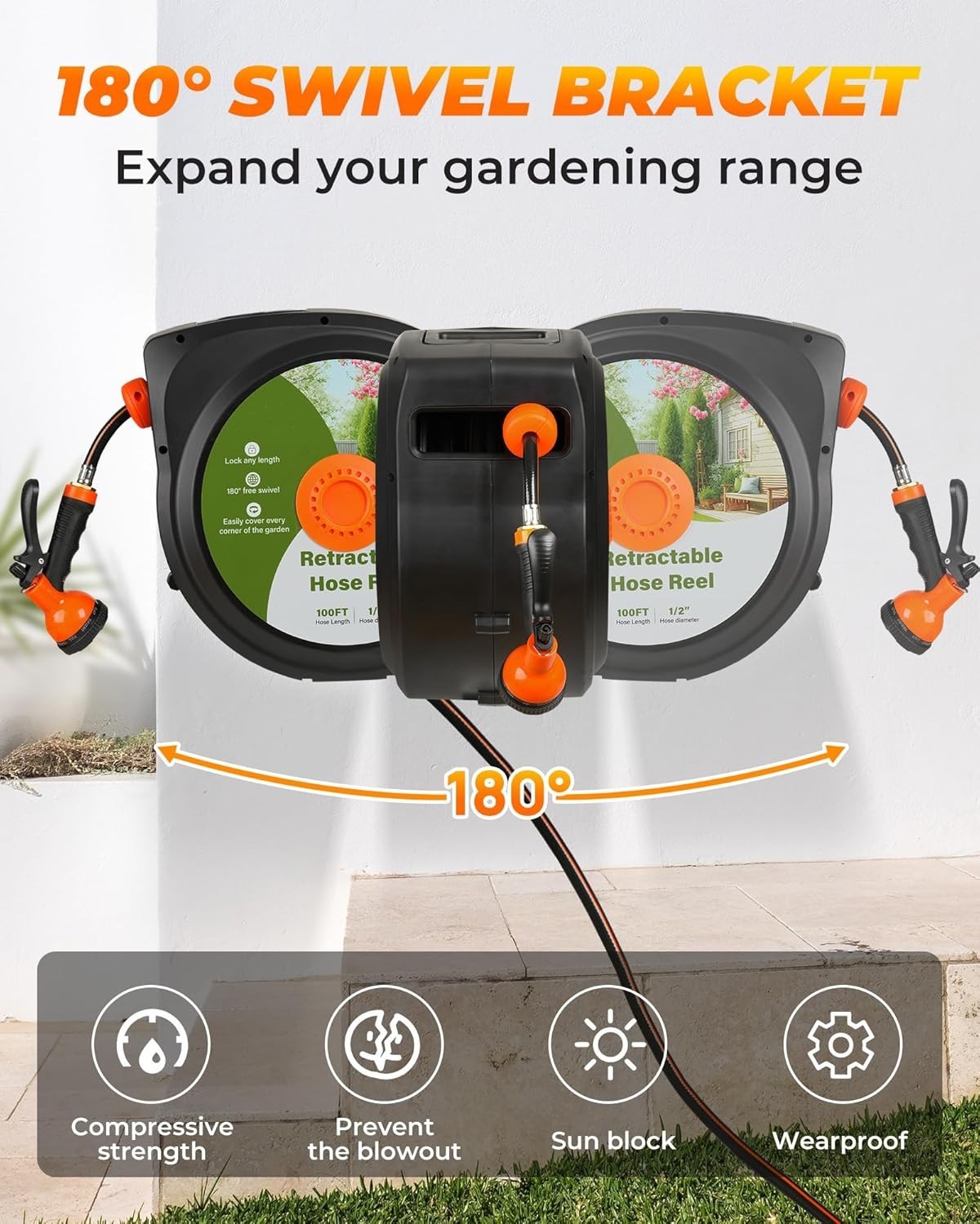 100 ft Retractable Garden Hose Reel