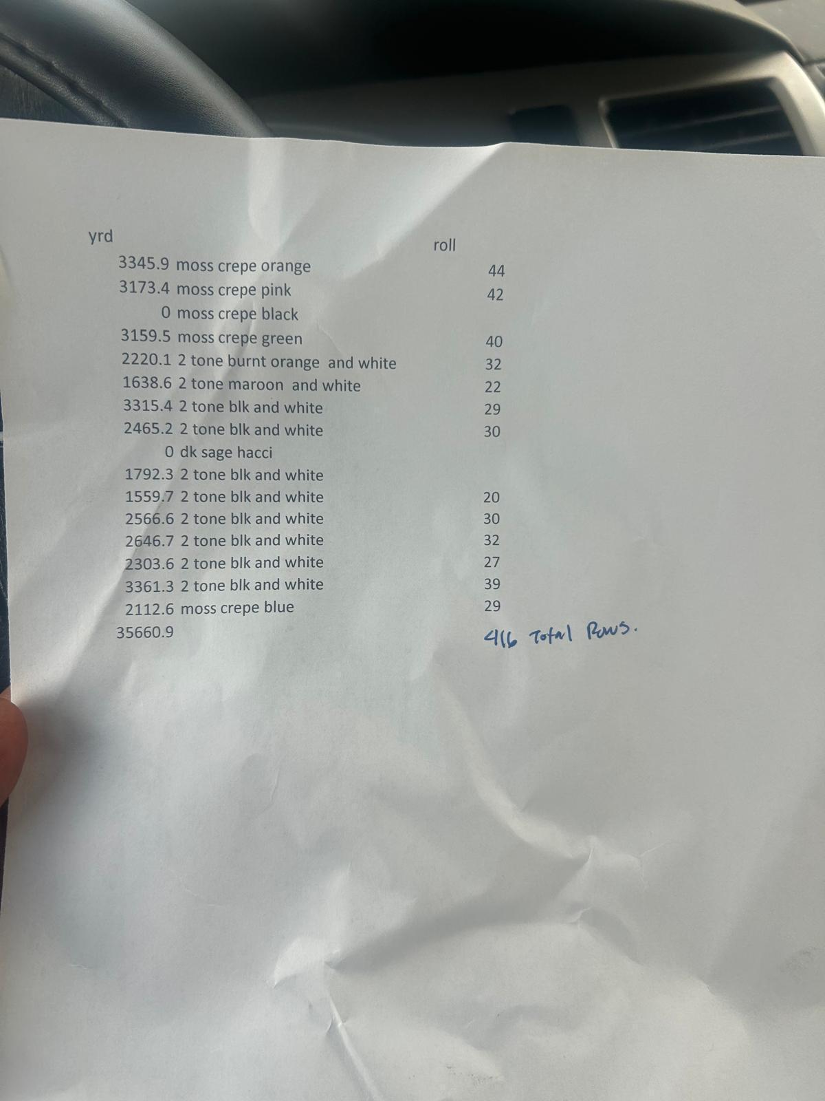 Fabrics stock offerTotal: 30 000 yards416 rollsPrice take all: 1.20$ per yardEXW: LA, USA