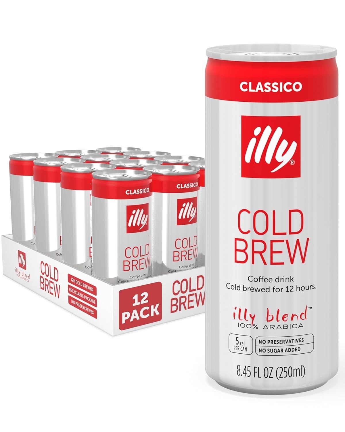 illy 12 Pack 8.45oz 100% Arabica Premium Italian Classico Cold Brew Coffee