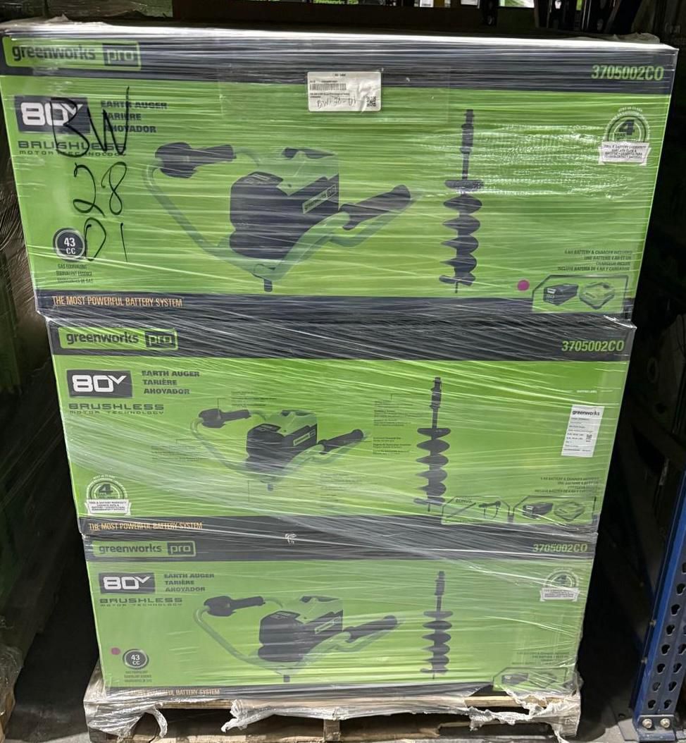 Green Works - Outdoor Tools2 TrailersTotal: 2 379 unitsRetail: 525 793.58$Price take all: 160 000$FOB: NC, USA