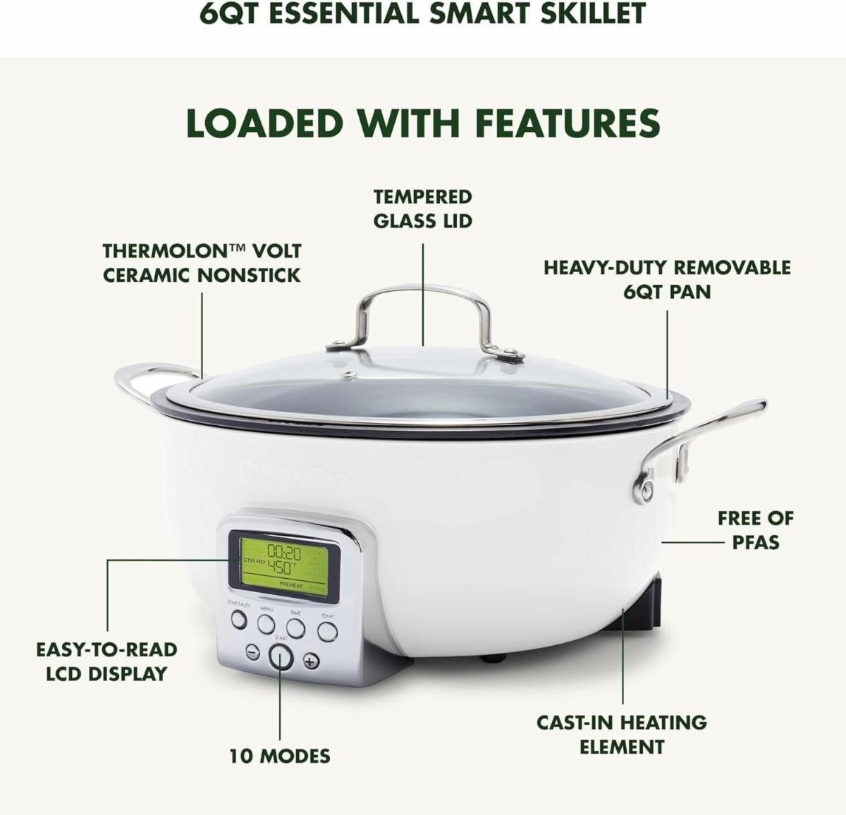 GreenPan Elite Essential Smart Electric 6QT Skillet Pot USA